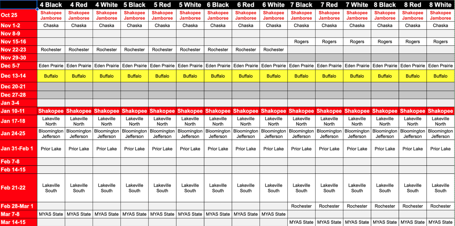 4th-8th grade teams will play 25-35 games over the course of the season with games taking place on weekends (sometimes Fridays).